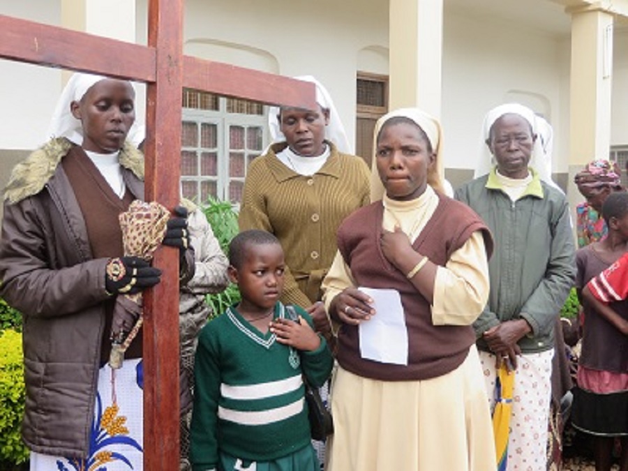 The head teacher from one of the school's in CARITAS For Children's child sponsorship program at the Fourteenth Station. She prayed for peace in the whole world. Many people joined the prayer session, that is, the aged, lame, men, women, children, students from different schools and the Little Sisters. Good Friday was such a reverent and silent day as people of different faiths came together contemplating the Passion of our Lord.